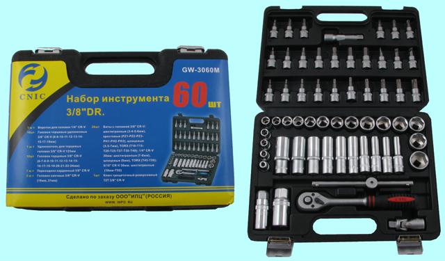 Набор "CNIC" 60 предметов GW-B3060M (торцевые головки 3/8", вставки) CrV в кейсе (упакованы по 6шт.)