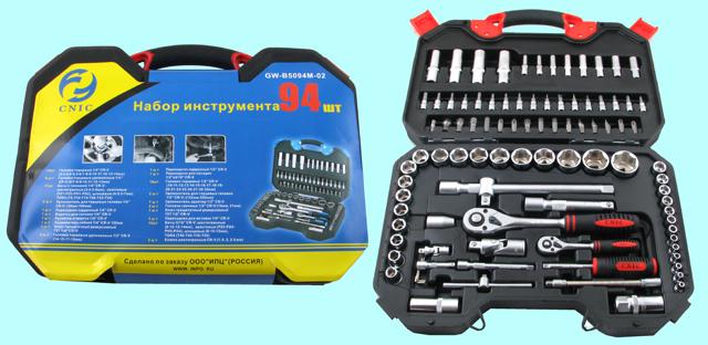Набор "CNIC" 94 предмета GW-B5094M-2 (торцевые головки 1/4"-1/2", вставки) CrV в кейсе (упакованы по 3шт.)