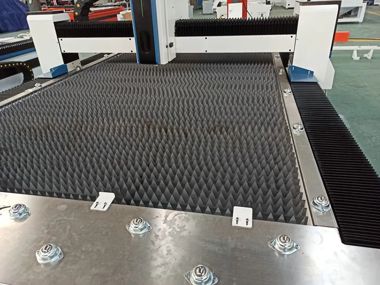 Рабочее пространство станка представляет собой набор из металлических ламелей по всей длине стола. Ламели имеют зубчатую форму, что снижает их износ. После выработки ресурса, ламели изготавливаются на станке.