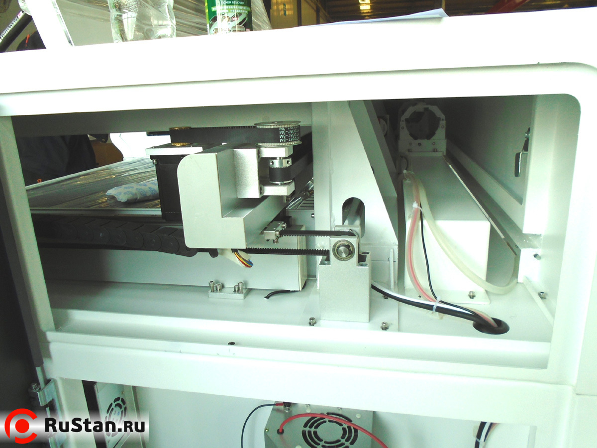Станки комплектуются 3-х фазными шаговыми двигателями. Одним из главных преимуществ станка в том, что механика станка выполнена на направляющих компании PMI, станки комплектуются лазерной трубкой Reci, а также возможностью дистанционного беспроводного управления по Wi-Fi.