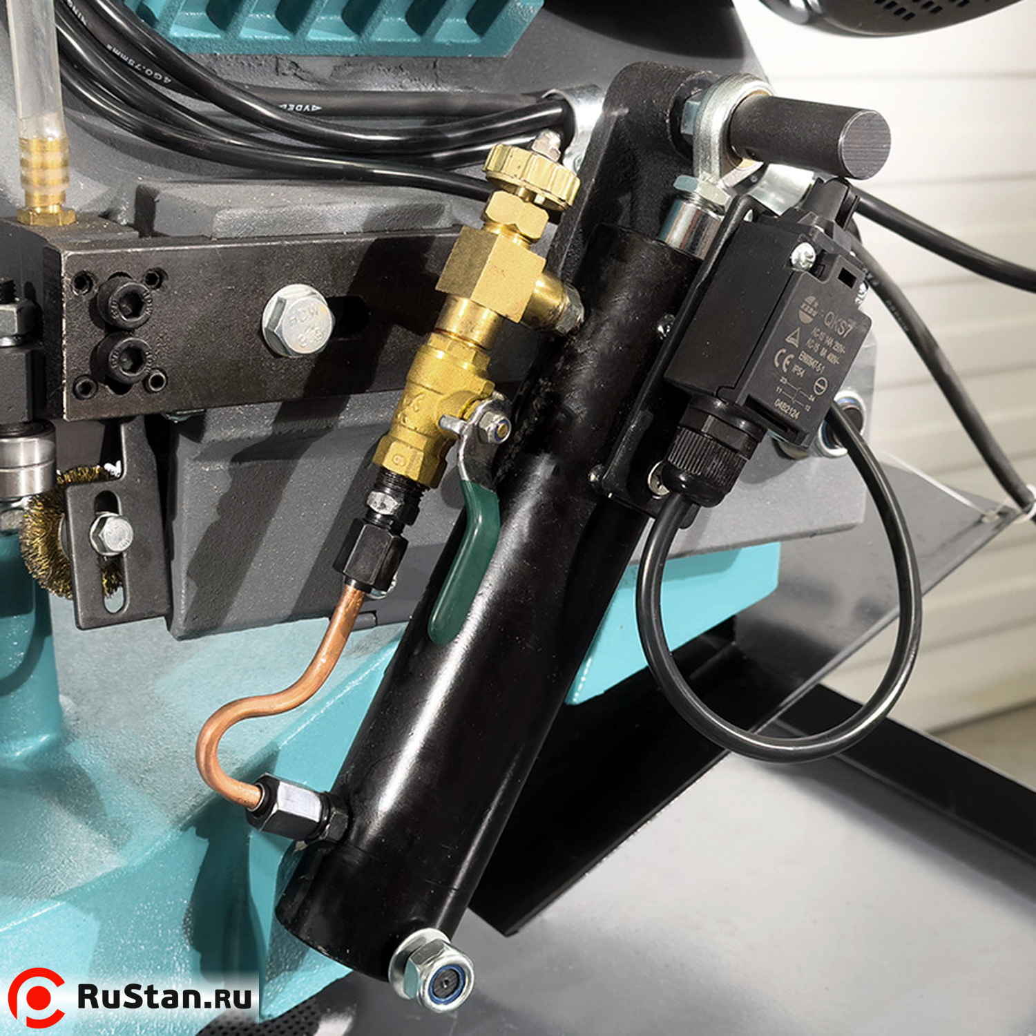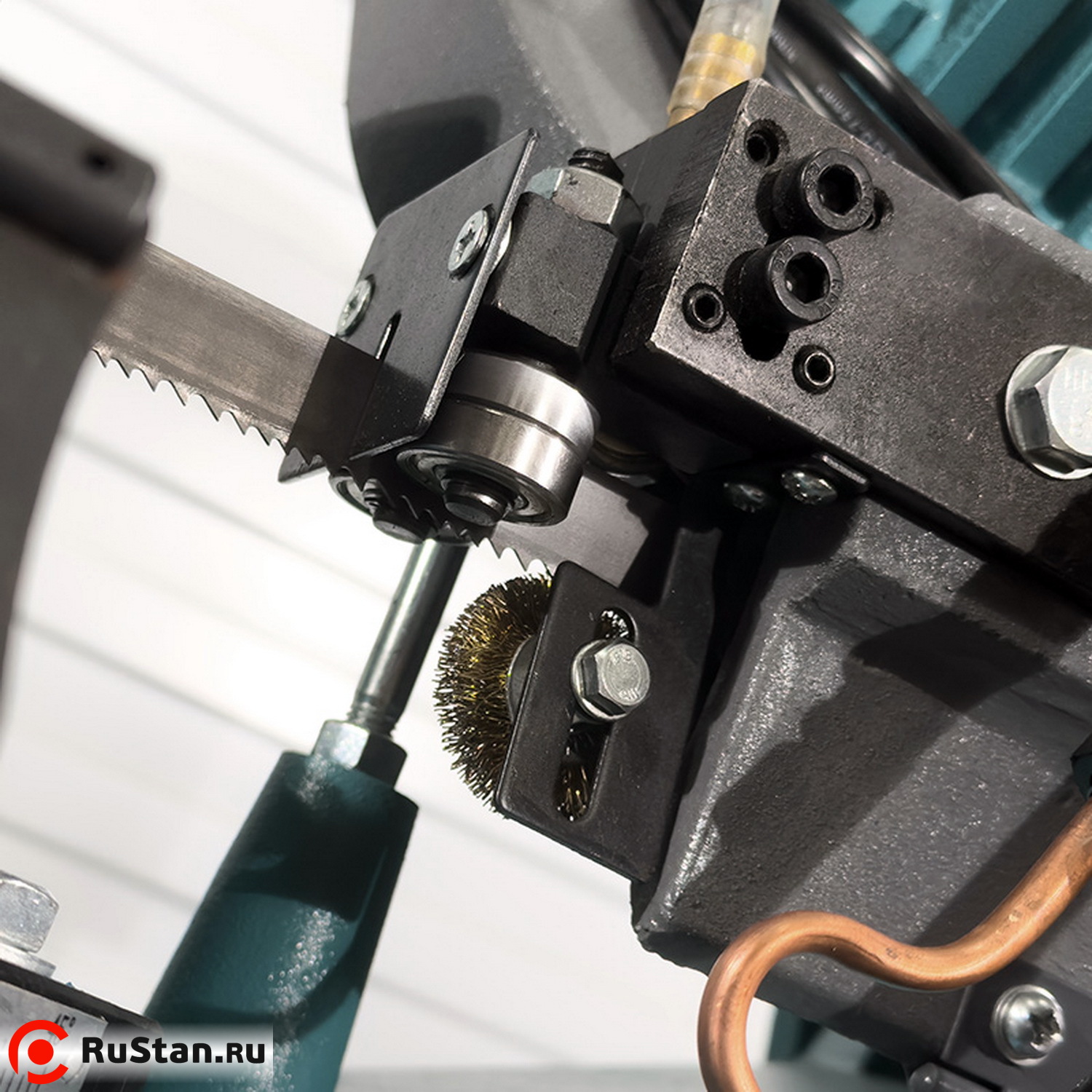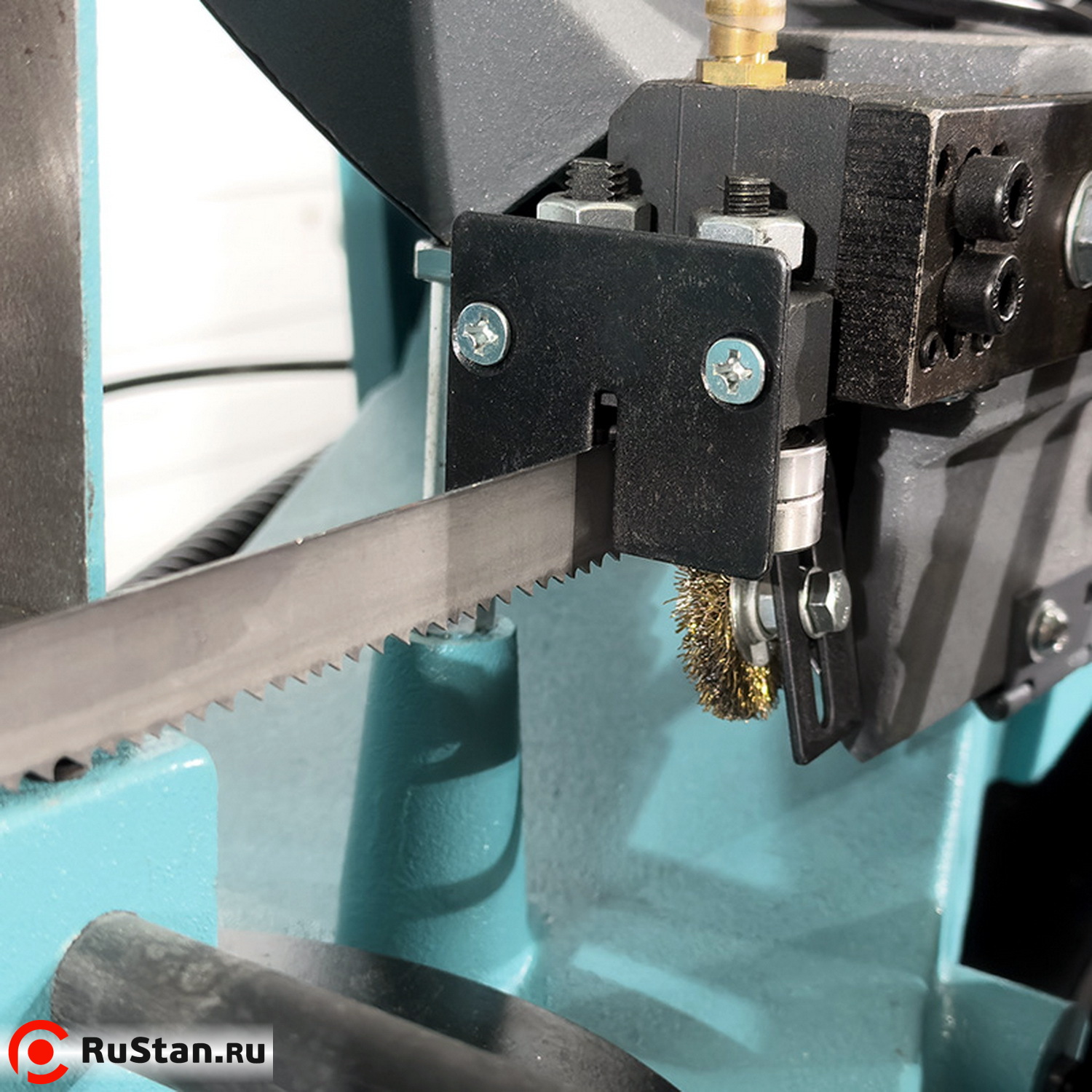 Скорость опускания пильной рамы можно регулировать гидроцилиндром. Модель оснащена системой подачи в зону резания смазочно-охлаждающей жидкости (СОЖ).
