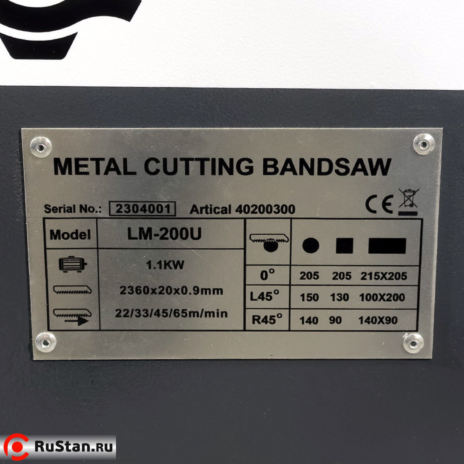 Размер ленточного полотна 20 x 0,9 x 2360 мм. Шаг полотна подбирается исходя из разрезаемого материала.