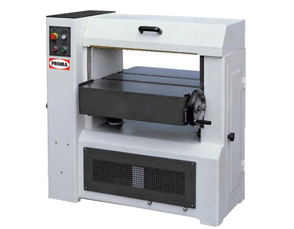 Корпус, рабочий стол, его удлинители и строгальная часть станка выполнены из массивных чугунных отливок, что обеспечивает устойчивость и стабильную точную работу без вибраций. Механизм протяжки имеет две скорости, оба вала металлические: подающий рифленый, приемный гладкий. В столе предусмотрены ролики для облегчения скольжения заготовки, их положение настраивают специальной рукояткой. Высота положения строгальной части регулируется маховиком: он расположен на горизонтальной оси, что удобно при вращении. За один оборот глубина строгания изменяется на два миллиметра. Компактный дизайн с нижним расположением двигателя внутри тумбы позволил разместить сверху станка ролики для обратной подачи заготовки, существенно облегчающие работу в ограниченном пространстве мастерской.