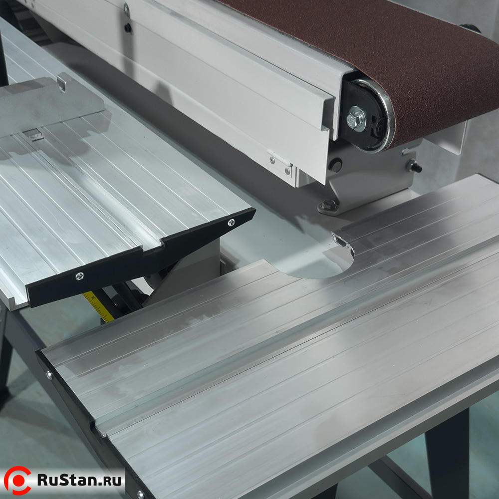 Рабочим органом здесь является абразивная бесконечная лента. Посредством ее вращения над столом, на котором размещается заготовка из дерева, производится работа станка. Стол также может двигаться. Ленточный шлифовальный станок обрабатывает заготовки окон, дверей, лестниц, стульев, элементов мягкой мебели и др.